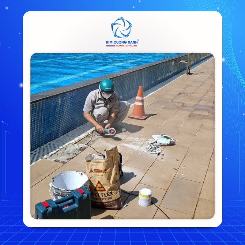 - Ốp lại sàn gạch khu vực hồ bơi