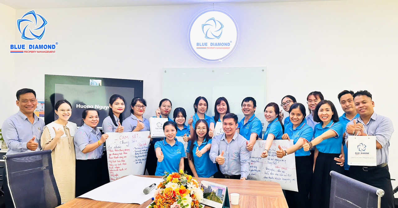 Củng cố, phát huy phong cách dịch vụ được tín nhiệm 17 năm qua, Công ty Cổ phần Kim Cương Xanh (Blue Diamond) vừa tổ chức buổi huấn luyện “Kỹ năng dịch vụ khách hàng” cho CBNV chuyên trách tại các dự án.