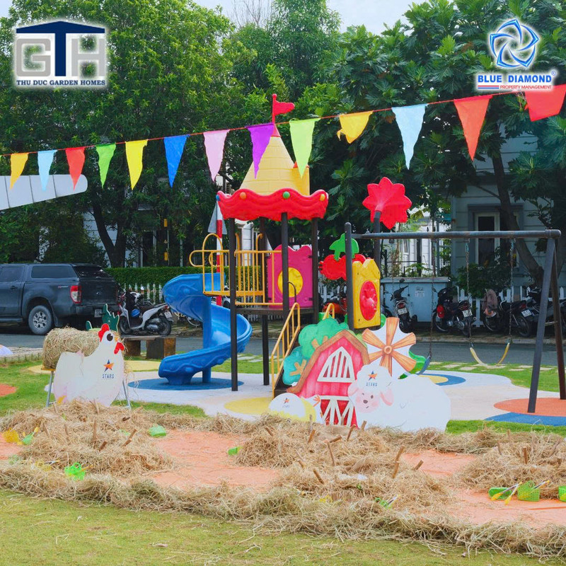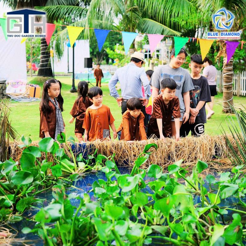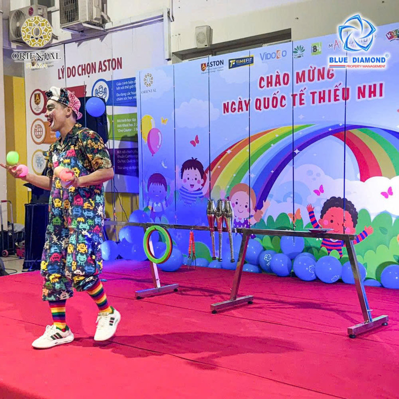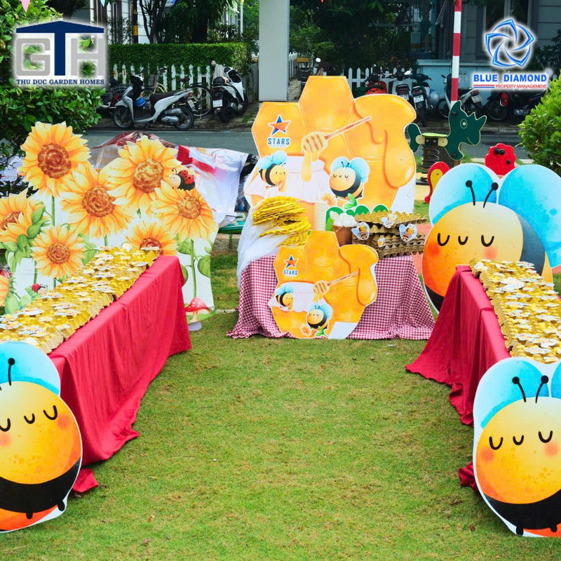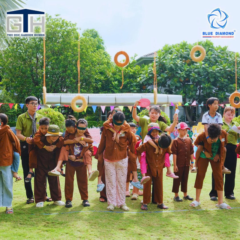 Từ sớm, không gian hội hè đã rực sắc màu và rộn tiếng cười vang. Các Ban Quản trị, Ban Quản lý khéo léo tổ chức vào chiều tối cuối tuần giúp các bé đều có thể vui chơi thoải mái, hết mình trong từng tiết mục: